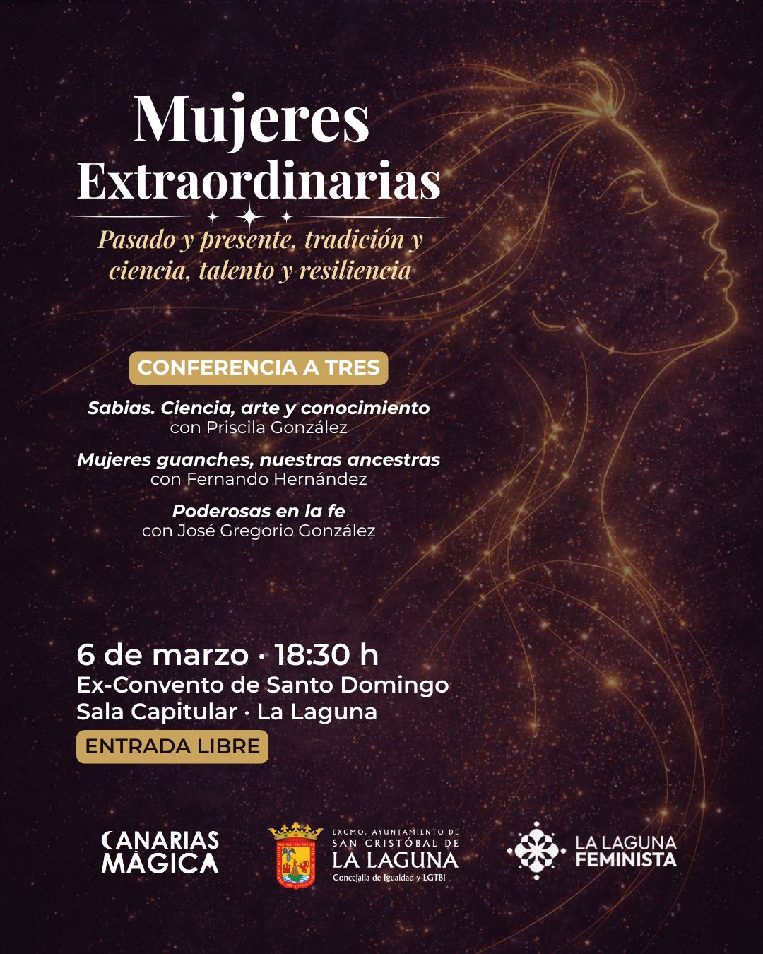 Con la participación de Priscila González, Fernando Hernández y José Gregorio González, la conferencia ofrece una aproximación divulgativa y reflexiva a figuras femeninas que forman parte del patrimonio cultural de Canarias.